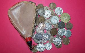 Old Coins - Old Leather Coin Purse - Some 90% Silver - War Nickel - Indianheads