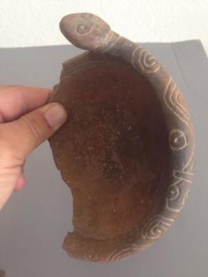 Awsome Pre Columbian Pottery Snake Design Bowl From South America? Saladoid?