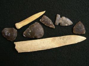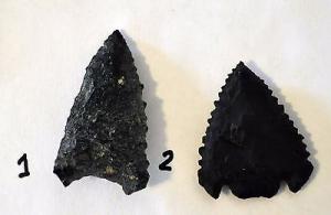 Arrowheads. Prehistoric Mound Builder Raven Pipe Spiro Mound. Bannerstone.