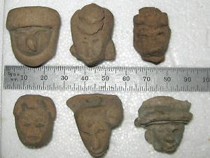 Pre-Columbian Teotihuacan 6- SMALL POTTERY FACE HEAD FRAGMENTS M-9