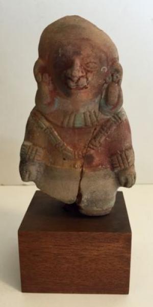 Pre-Columbian Pottery Figure ~ Mounted on Wood Block