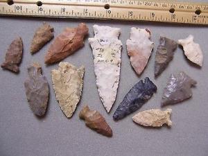 13 NICE AUTHENTIC POINTS FROM JOHNSON AND HARDIN COUNTIES IN ILLINOIS