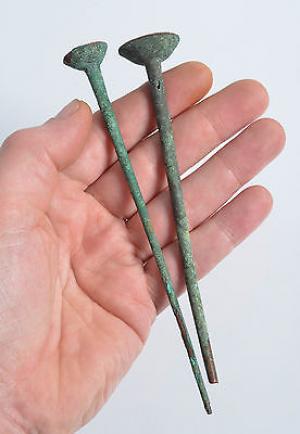 Antique Pre Columbian Pair of Copper Cloak Pins, PERU Moche Chimu Maya #2