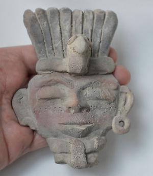 RARE PRE COLUMBIAN / AZTEC CLAY GREAT FIGURE HEAD E IMPORTANT PERSON