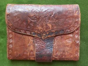 ORIGINAL 1805 DATED EARLY AMERICAN TOOLED LEATHER WALLET OR DOCUMENT POUCH NEAT!