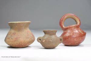 127) Lot of Three Ancient Pre Columbian Mesoamerican Pottery Vases Artifacts