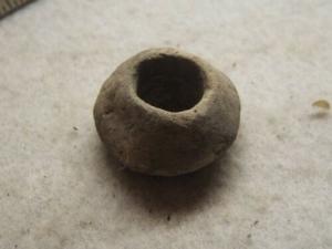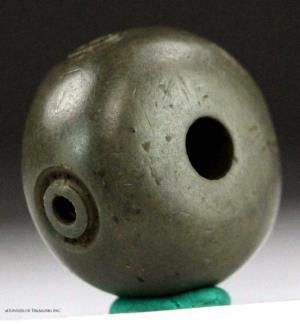 117) Pre Columbian Moche Chimu Indian Stone Spindle Whorl "Eyes" Bead Artifact