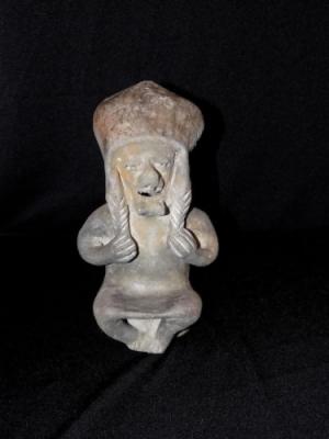 ANTIQUE PRE-COLUMBIAN POTTERY SEATED FIGURE STATUE