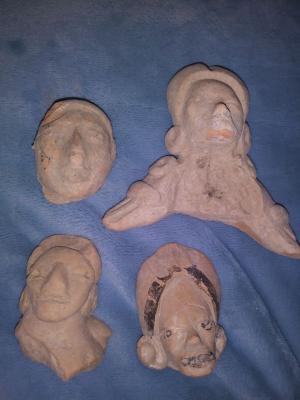 Lot Of 4 items - Ancient Pre Columbian Pottery heads / partial figure