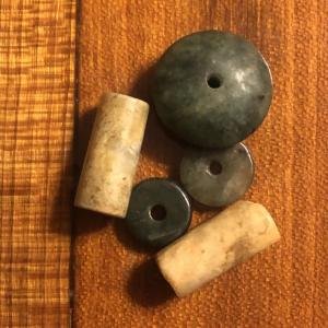 Pre-Columbian Jade Beads, Central American Jade, Set of 9 Disc Beads