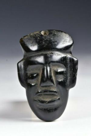 Pre-Columbian Black Jade Axe God Pendant, Authentic