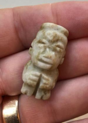 Attractive Pre Columbian Jade Bead Amulet "Skywatcher" West Mexico, 500BC-1000AD