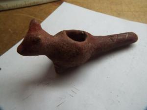 NEAT PIECE PRE COLUMBIAN ANIMAL FIGURE CLAY PIPE