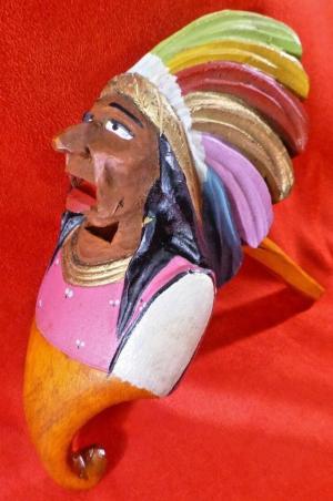 BEAUTIFUL. EARLY 1900s INDIAN CHIEF NUT CRACKER CARVED WOOD HAND PAINTED.
