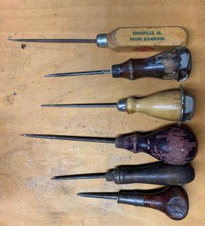 Lot of 6 Vintage Antique Ice Picks/ Awls Rustic Old Worn Wood Handles
