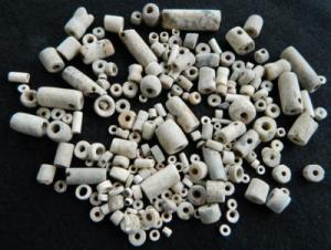 RARE Aztec, MAYAN c. 200-800 AD CLAY & carved shell BEADS LOT Of "7"