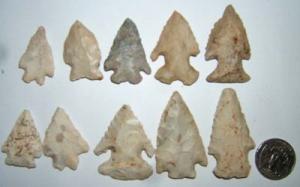 10 Old white flint spear points Indian relics Indiana found NR lot