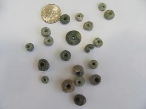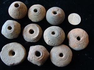 LOT of 10 ANCIENT PRE-COLUMBIAN MAYAN CERAMIC SPINDLE WHORLS CENTRAL AMER BEAD