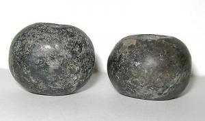 Pre-Columbian 2 BLACK STONE BEADS - 1 OVAL SHAPED 22mm & 1 ROUND 22mm HANDCARVED