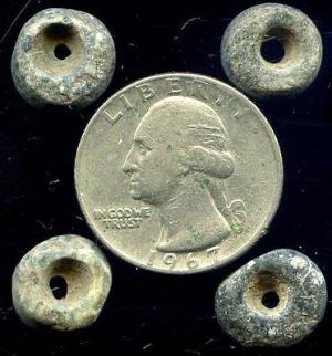 Pre-Columbian 4 AZTEC DRILLED SERPENTINE? BEADS: ca:300 BC-500 AD
