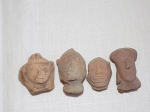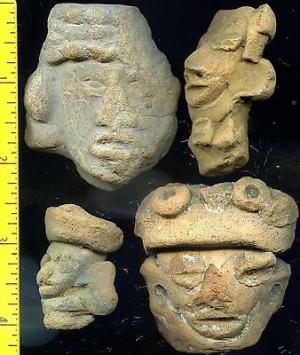 Pre-Columbian 4 Aztec MAZAPAN CLAY FIGURE HEADS, ca; 700-1200 AD