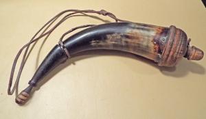 ANTIQUE POWDER HORN, 1800''s, NATURAL MATERIALS, EXCELLENT CONDITION
