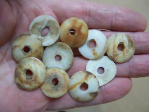 10 VERY FINE AUTHENTIC SHELL DISC BEADS FROM THE JIM BUSSEY COLLECTION
