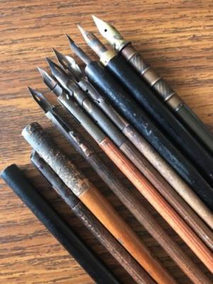 Antique Old Fountain dip Ink pen lot of 10 collectible Hampton Dixon ml leman