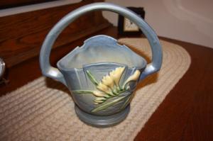 Roseville Pottery Basket "Freesia" 391-8'''' In Blue