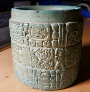 Pre Columbian Style Maya Glyph Blue Ceramic Cup STUNNING Glyphs