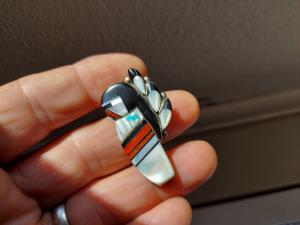 Old Vintage Southwest Native American Zuni Kachina Brooch Pin Pendant Signed RG