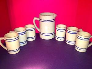 Rare Complete Set Of Buckeye Pottery Tankards Piture Root beer Advertising