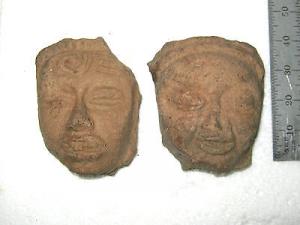 PRE-COLUMBIAN TEOTIHUACAN - 2 NICE MOLDED HEADS - GODS? - DETAILED M-5