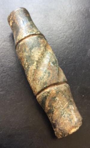60) Ancient Pre Columbian Tairona Indian Jadeite Green Stone Bead 29 x 9 mm