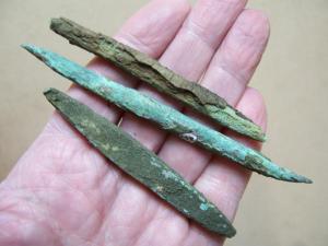 THREE AUTHENTIC OLD COPPER CULTURE AWLS FROM THE GORDON MORRIS COLLECTION