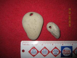 2 NICE DRILLED STONE NET WEIGHTS ( " SHAGINAPPI SITE ", NEAR- PIPE, WISCONSIN )