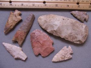 15 ASSORTED STYLE NATIVE POINTS & TOOLS ( NW END, SHEBOYGAN MARSH, WISCONSIN )