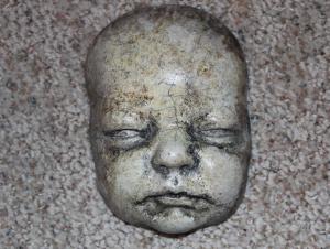 Mayan Pre Columbian Tattoo''d Painted Red Clay Stone Monkey Ape Head 6"x5" Round
