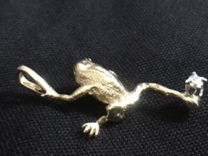 BEAUTIFUL GENUINE DIAMOND 14K GOLD LEAPING FRONG PENDANT
