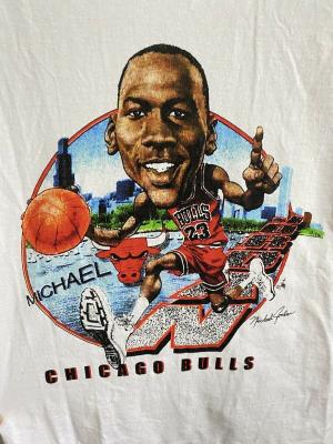 VINTAGE MICHAEL JORDAN ALL OVER PRINT 90s YOUTH T SHIRT CHICAGO BULLS RARE Lg