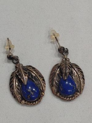 Vintage Native American Navajo Sterling Silver Signed Ted Baca Lapis Earrings