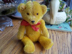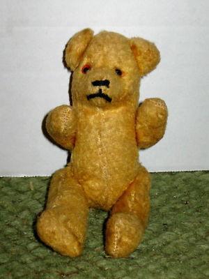 | Vintage Tiny Wee Teddy Bear 6" - Gold Silk Mohair Plush |