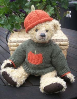 | HAND KNITTED HALLOWEEN PUMPKIN OUTFIT FOR A 13-14"  BEAR |