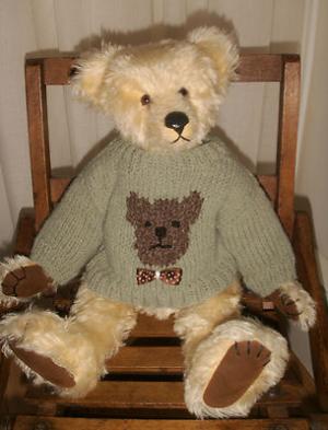 | *TEDDY CLOTHES* HAND KNITTED TEDDY FACE JUMPER FOR A 15 INCH BEAR |