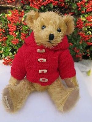 | *TEDDY CLOTHES* new hand knitted duffle coat for a 6.5" bear or 17cm Steiff |