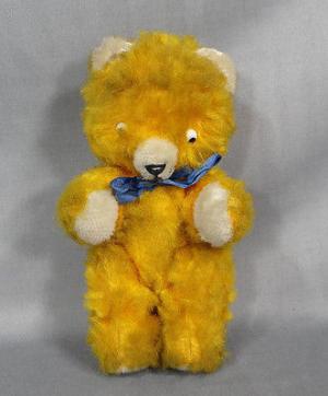 | Vintage Antique MOHAIR JOINTED TEDDY BEAR Golden Yellow 18” button? |