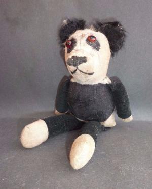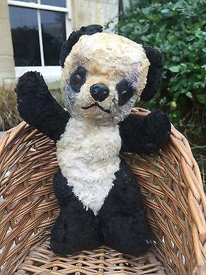 | ANTIQUE VINTAGE 1930'S SMALL PANDA TEDDY BEAR VERY WELL LOVED 9.5" |