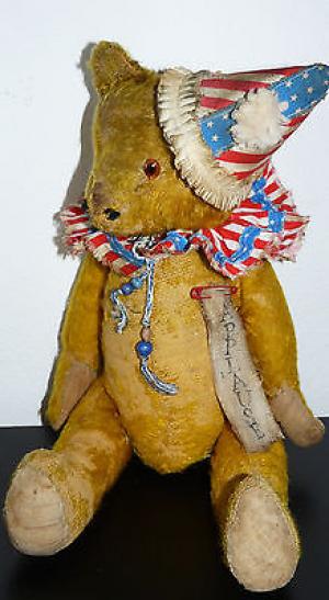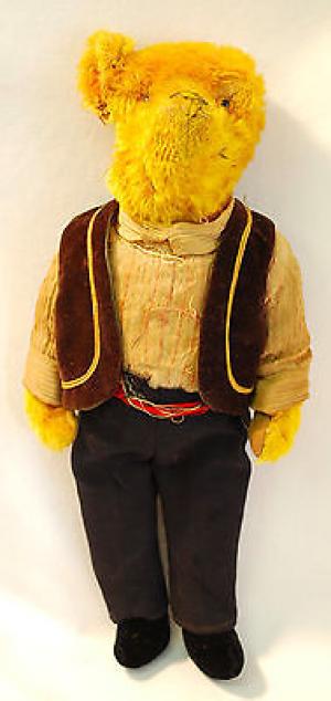 | 12" Antique German Steiff or ? Bear 1920's 1930's gold mohair  Dressed! |