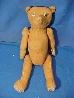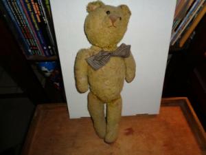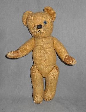 | VINTAGE-Jointed German Teddy Bear-w/plastic eyes, threaded nose-13 1/2" tall-TLC |