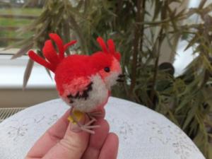 | Vintage German Steiff Red Bird Pom pom Woolie Toy with Silver Button   Bear Doll |